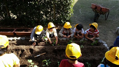 天気もよく、1年生は冬野菜植えにチャレンジ。ニンジン、大根は種から、チンゲンサイなどは苗からです。ニンニクを植えた1年生もいました。成長したら、私にもあげると約束してくれました。楽しみですね。