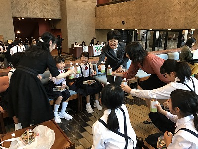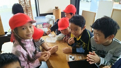 2年生は生活科で富岡校区を探検をしています。この日は150年の歴史ある黒瀬製菓さんです。遠い道のりも平気です。食べ物屋さんですから。子どもたちの質問にも丁寧に説明していただき、2年生も、先生も大感激です。