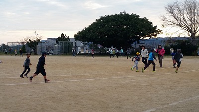 登校後は、朝のマラソン5分間走です。5分間ですが、開始時刻前から自然と走る風景があります。先生たちは逆走しながら子どもたちの表情に目を配っています。