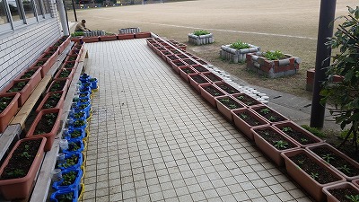 走る前後には水かけをします。主事の先生が種子から育てた様々な苗や、苓北中21期生のみなさんから植えていただいたパンジーを大切にお世話します。春先には、富岡花のストリートができるでしょう。