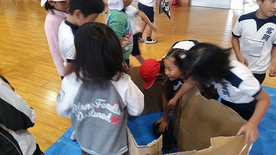 5年生が下級生を招待して、これまで学習したことをゲームを通して伝えます。今日は3年生を迎えました。3年生は英語に関心があり、楽しく積極的に学習できました。次年度からの楽しみが増えたようです。