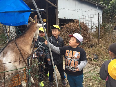 1年生は山羊の見学に行きました。小さいイメージがありますが、その大きさにびっくり。町のスクールバスを利用できることで、体験学習の幅が広がります。