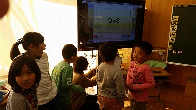 2年生の自習風景。ランダムに出てくるかけ算の答えを言っています。冬休みの唱え練習を経て、3学期はいよいよ検定です。7年部も協力して行います。上り、下り。上り下り。どのレベルまで唱えことができるかな?6,7,8の段が難関です。がんばれ、2年生!