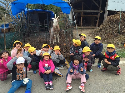 1年生は山羊の見学に行きました。小さいイメージがありますが、その大きさにびっくり。町のスクールバスを利用できることで、体験学習の幅が広がります。