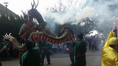 蛇の頭の方は20㎏もあるそうです。笛の音に合わせた踊り、爆竹音。迫力がありました。参加された方に聞いたところ、ユーチューブに動画がアップされているそうです。