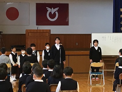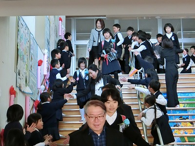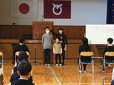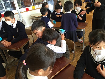 卒業式練習の仕上げを行い、昼休みは1年と6年のお別れお遊びの時間。