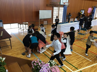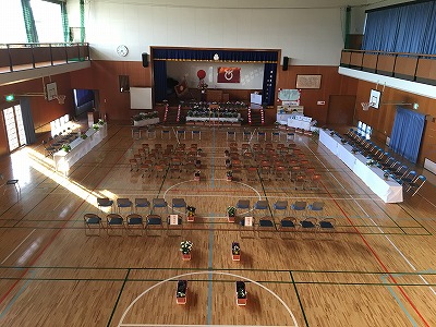 準備の時間だけでなく、その前から動いていました。5年生は朝から体育館の拭き掃除。1年はプランター運び。準備の時間は3~5年でしたが低学年も協力しました。全児童が「感動の卒業式」に向けて動いていたのです。