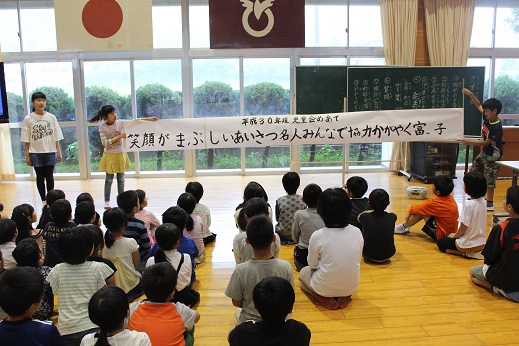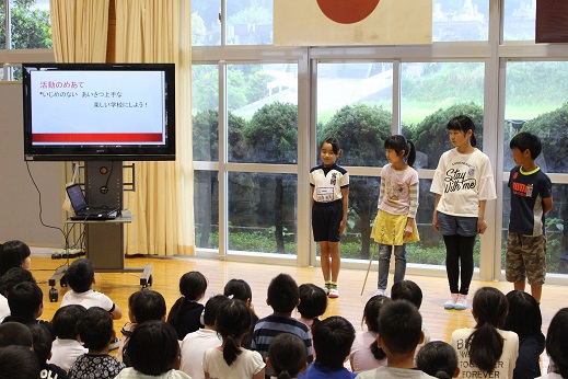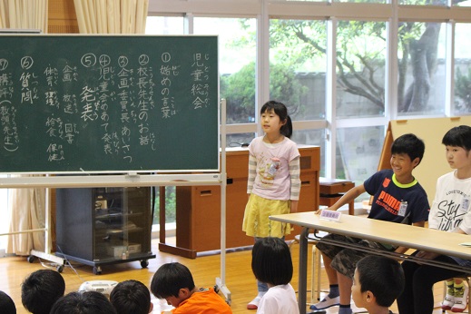 5月7日(月)、児童総会がありました。今年の児童会のめあてが全児童の前で発表されました。