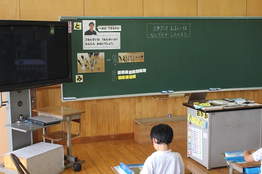 1年生の研究授業がありました。「さとし小学校」の先生からの司令を受けて問題を解決するということで、子ども達はとても意欲的に学習に取り組みました。