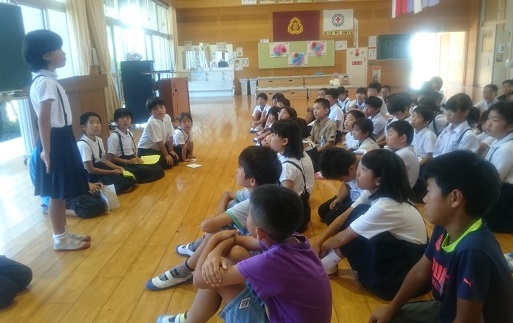 終業式では、各学年の代表の人が1学期がんばったことや夏休みにがんばることを発表しました。
