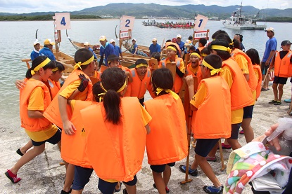 今日は、2回目の海での練習です。かけ声は「そ~れ、1・2・3!」