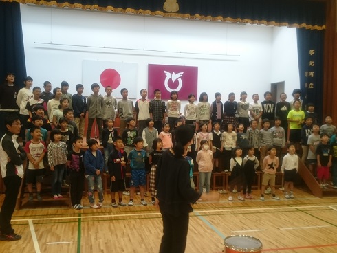 今日は、全校児童で行う群読の練習を体育館で行いました。見に来てくださった方に