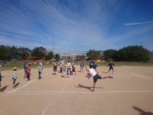 聞かれました。澄んだ青空の下、思い切り体を動かした66人の子どもたちでした。