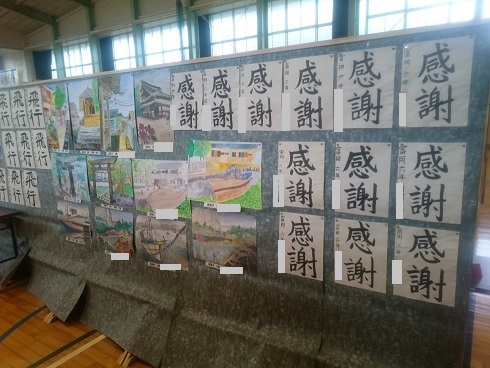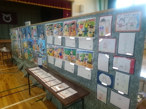 子どもたちの作品も展示されます。描画、毛筆、硬筆、壁新聞、クラブの作品など力作揃