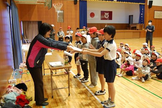 最後に各学年の1位の人に、校長先生から賞状が渡されました。みんな、お疲れ様でした。