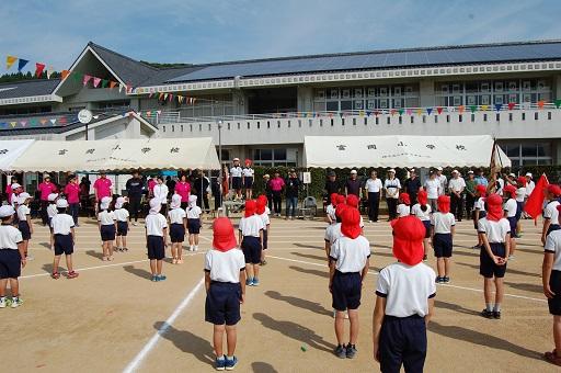 澄み渡った青空の下、開会式が始まりました。1年生の開会の言葉も上手でした。