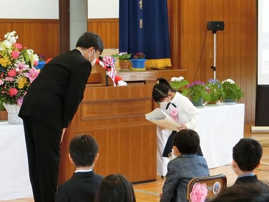 校長先生からは教科書を代表児童に渡してもらいました。もらい方もとても上手でした。