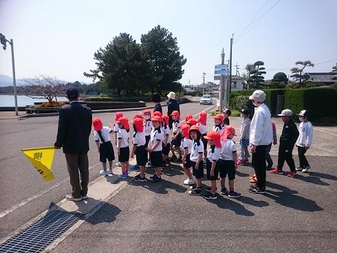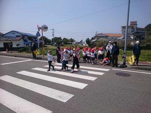 1、2年生の交通教室がありました。学校の周りの道を歩きながら、安全な