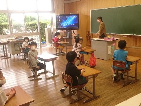 72名の全児童が元気に登校しました。通常の学校生活が始まりましたが、