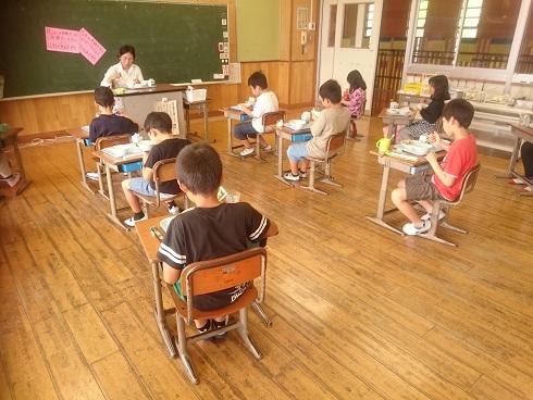 給食も全員前を向いて、おしゃべりをせずに食べます。