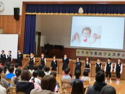4年生は、「10歳のありがとう」というテーマで、「2分の1成人式」を群読や歌で表現しました。一人一人の声が力強く、将来の夢や頑張っていくこと決意を伝えました。また、お家の方への感謝の気持ちを言葉と歌で証言しました。感動いっぱいでした。