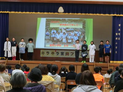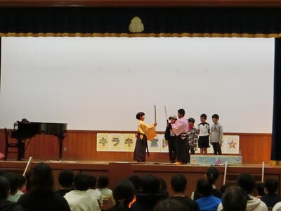 3年生は、「富岡たんけんたい」というテーマで、町内のスーパーマーケットの工夫や努力、富岡城に関する歴史や活躍した人物などについて、学んだことを堂々と発表しました。衣装やかつらなど工夫されていて、一人一人の演技がとても上手でした。リコーダー演奏もきれいな音色でした。