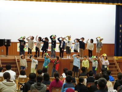 2年生は国語科で学習した「お手紙」を物語に、劇を発表しました。一人一人の音読の工夫が素晴らしかったです。また、映像で特技を紹介し、才能豊かな2年生の姿が見られました。手話での歌の発表に心が温まりました。