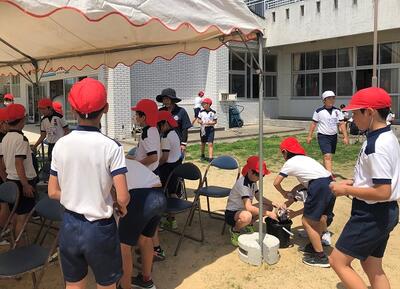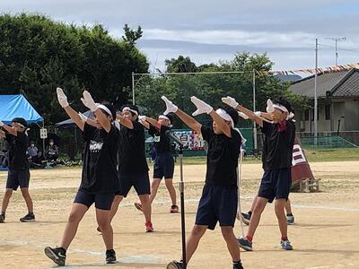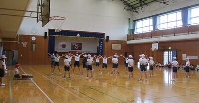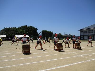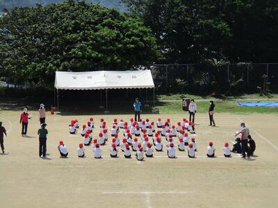 この日は、予行練習を行いました。競技は、一部のみの実施でしたが準備係や出発係など各係に分かれて仕事の確認を行っていました。表現は、本番通りに行い、初めて見る他の学年の演技に見とれていました。みんな暑い中一生懸命取り組みました。本番がとても楽しみです。