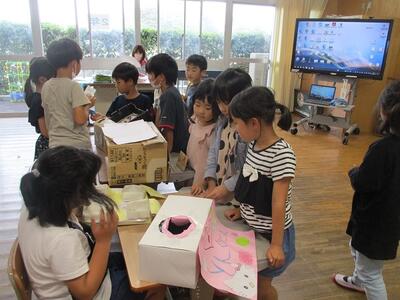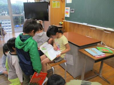2年生が1年生のために読み聞かせを行ったり、昨年の生活科「秋まつり」で作成したおもちゃを使って1年生を教室に招待し、一緒に遊んでいました。とても微笑ましい光景でした。