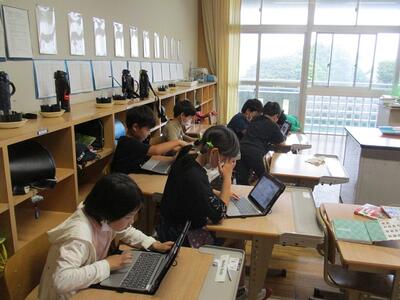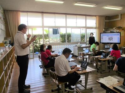 午前中は、予行練習が行われましたが、午後から先生方は校内研修でタブレットの活用について学びました。子供たちのタブレットと教師用のパソコンを使いながら、研究主任が教科の学習で使えるソフトなどを紹介し、実際に使いながらそのよさを確かめていました。私自身は、ちょっとついていけないところもありましたが、先生方は子供たちが楽しく分かる授業を!とどんどんチャレンジし活用されています。ICTを何のために使うのかをしっかり考え(目的ではなく手段として・・・)効果的に活用していくことができたらと考えています。