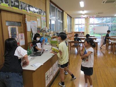 4年生は、図書室でたくさんの子供たちが本を借りていました。5・6年が応援団の練習で不在のなか、4年生の図書委員がしっかりと本の返却・貸し出し作業を行ってくれました。教室では、ソーラン節の練習も行われていました。
