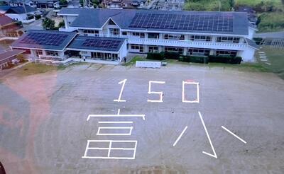 「富」の文字は、子供たちで作りますので、保護者、地域の方はその他の文字の上に立たれてください。たくさんの方が参加してくださることを期待しております。航空写真撮影の後、富小伝統のもち投げを行います。運動会とともに150周年記念事業も成功し、思い出深い一日となりますように・・・