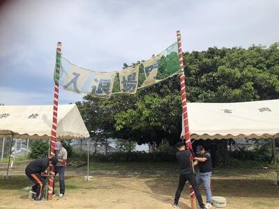 みなさんの手際がよく、なんと20分で作業完了。その後、地区ごとのテントを立てて準備完了となりました。