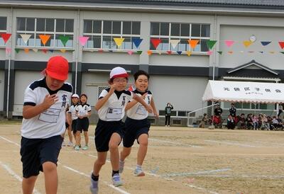 プログラム6番、4年徒走「目指せNo.1!」徒走を締めくくるのは明るく元気な4年生、人数も多くその中で1位をとるのはかなり大変ですが、最後まであきらめず、ゴール目指して頑張りました。