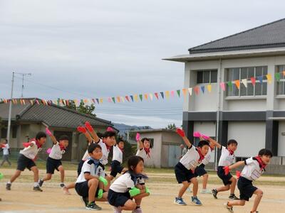 欠席・見学する子供もなく、無事予定通り運動会を終えることができました。前日から準備等ご協力いただいた保護者・地域の皆様、誠にありがとうございました。