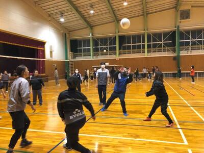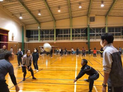 19時から、苓北町体育センターで、苓P協ミニバレー大会が行われ、苓北町の小中学校の保護者や先生方がチームを作ってミニバレーのゲームを楽しみました。富小のPTA会長も進行役として活躍されていました。