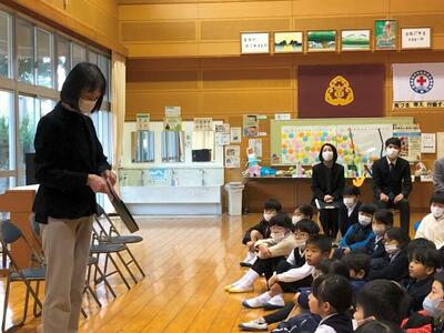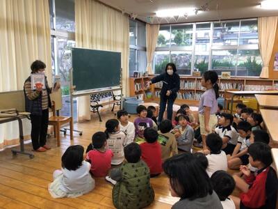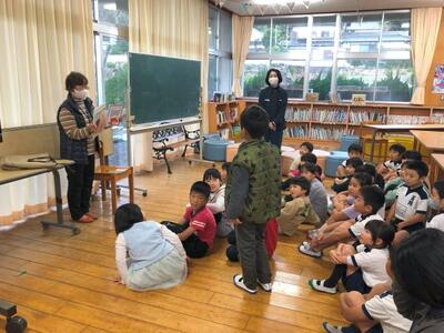 この日は、2学期最後(今年最後)の読み聞かせが行われました。まず、1冊目の本は「うさぎとかめ」。みんな知っているお話ですが、絵本の挿絵がとてもきれいで、子供たちも引き込まれていました。