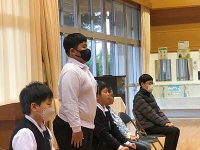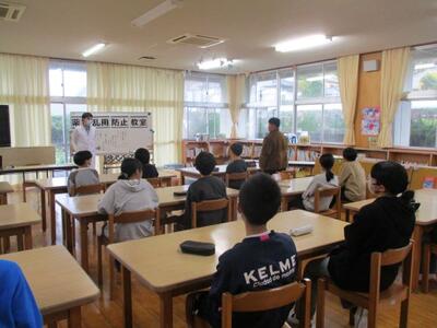 学校保健委員会の後は、学校薬剤師の先生を講師にお迎えして薬物乱用防止教室が開催されました。保健委員会の子供たちが、進行していきます。