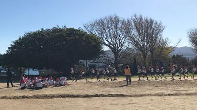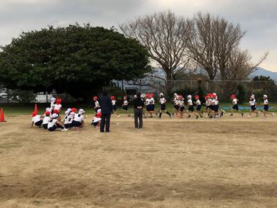午前10時40分、最後の高学年のスタートです。高学年は、アップダウンのある3キロのコースを走ります。中には、お家の人も伴走してくださり、親子でゴールと微笑ましい光景も見られました。子供たちの応援の姿も素晴らしく、寒さ対策のため、児童玄関で応援するようにしていたのですが、最後の子どもが門を通過したと聞くとみんな運動場に飛び出してきて「がんばれー」「あと少し-」と大きな声で一生懸命応援していました。