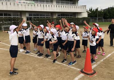 午前9時40分、運動場に集合し、体育委員会の子供たちによる進行で開会式が行われました。