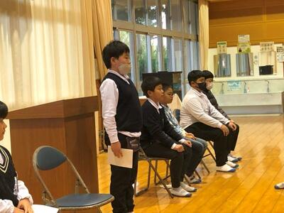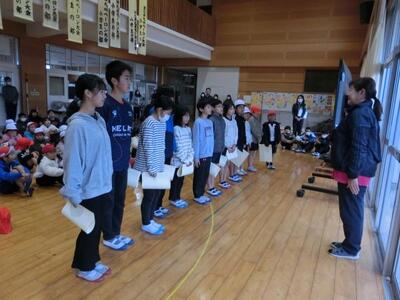 そして、閉会式。場所をホールに移して行いました。講評で、教頭先生が「今日が今までの中で一番頑張ったという人は?」と尋ねられるとほとんどの子供たちが手を挙げていました。表彰では、学年男女1位の表彰が行われたほか、予想した宣言タイムに近かった子供たちも紹介され、とてもうれしそうでした。