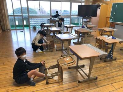 終業式の後は、大掃除。1年間学んだ場所に「ありがとう」の気持ちを込めて、教室の隅々や自分が使っている机やイスを磨いたり、道具をきれいに片付けたりと時間いっぱいまで一生懸命取り組んでいました。