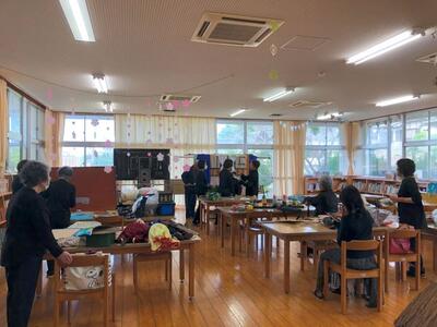 富小でも、本の楽しさを感じてもらおうと、いつも読み聞かせでお世話になっているたんぽぽホールの皆様をお迎えしてお話会が2時間目に行われました。始まる前は、図書室で道具の確認や練習をされていました。