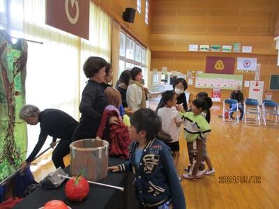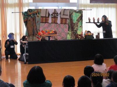 あっという間の1時間でした。最後は、図書委員の代表が感想とお礼を伝え、お話会を終えました。お話会終了後も、人形や小道具などに触らせてもらい、手作りのすごさを実感していました。