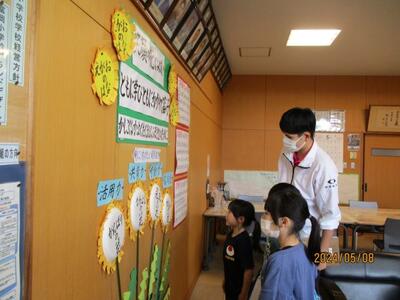 今朝は富岡地区の民生委員さんが朝早くから正門前に立たれ、あいさつ運動を行っていらっしゃいました。子供たちも元気に挨拶をしていました。