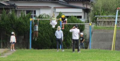 昼休みには、急遽全校児童による応援の練習が入りました。今年度は、5・6年の応援団以外の学年も運動場にならび、声かけや拍手で参加します。1~4年生も、応援団になった気分で、体をのけぞらせながら、赤も白も負けじと一生懸命声を出していました。