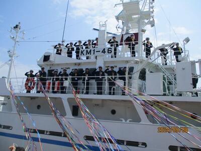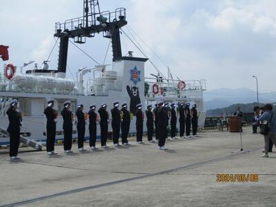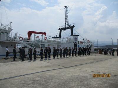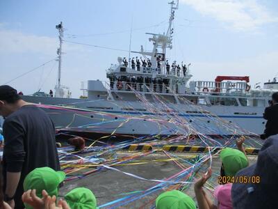 そして、学校を出て、富岡港で行われている天草拓新高校マリン校舎の熊本丸出港式にも一緒に参加しました。