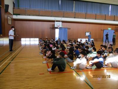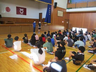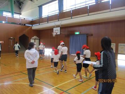 2年生は、体育館で5年生と一緒に体力テストのシャトルランにチャレンジしていました。5年生のお手本を見て、2年生も負けないぞといい記録を出していました。互いに応援する姿も素晴らしかったです。