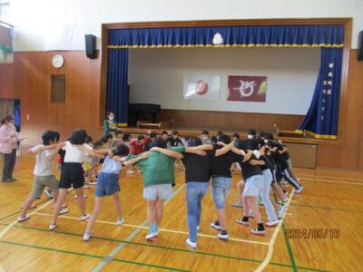 その後、団ごとに分かれ自己紹介を行い、最後は気合い入れをして、運動会での勝利を誓い合いました。