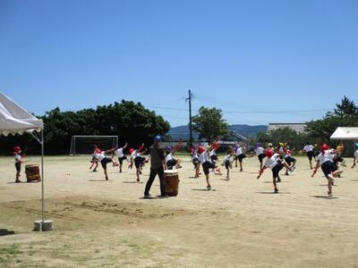 そして、今日はとてもいい天気・・・下学年、上学年とも全ての種目を通しての最後の仕上げの練習が行われていました。